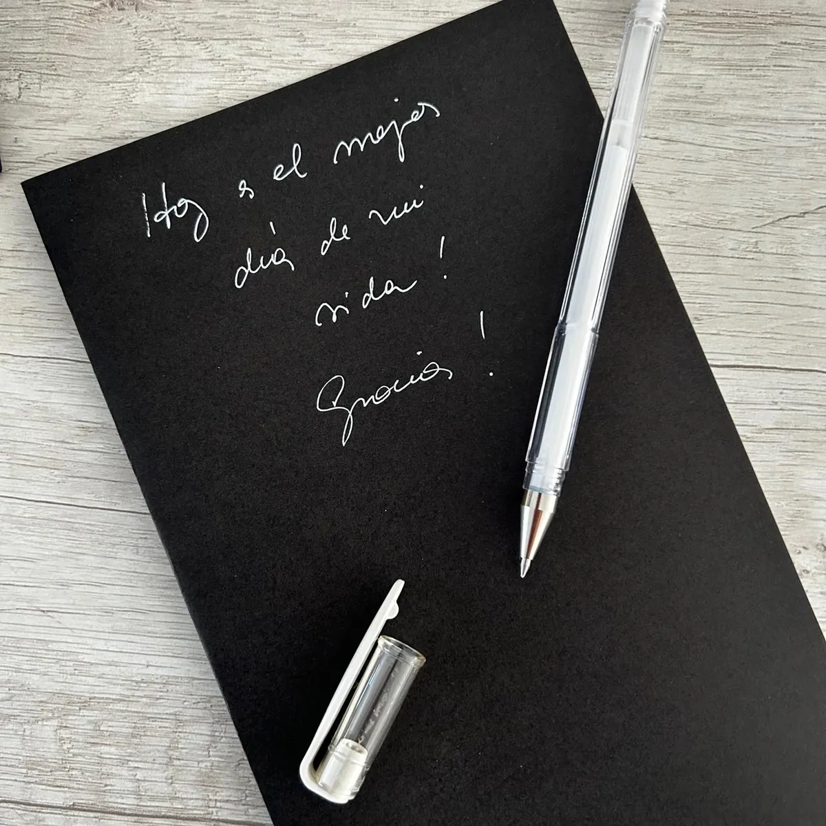 Diseñadas específicamente para quienes buscan un espacio de introspección diferente, estas hojas ofrecen el lienzo perfecto para herramientas de escritura de alto contraste. Su superficie lisa y opaca permite que la tinta blanca o los colores fluorescentes cobren una dimensión vibrante que el papel tradicional no ofrece.